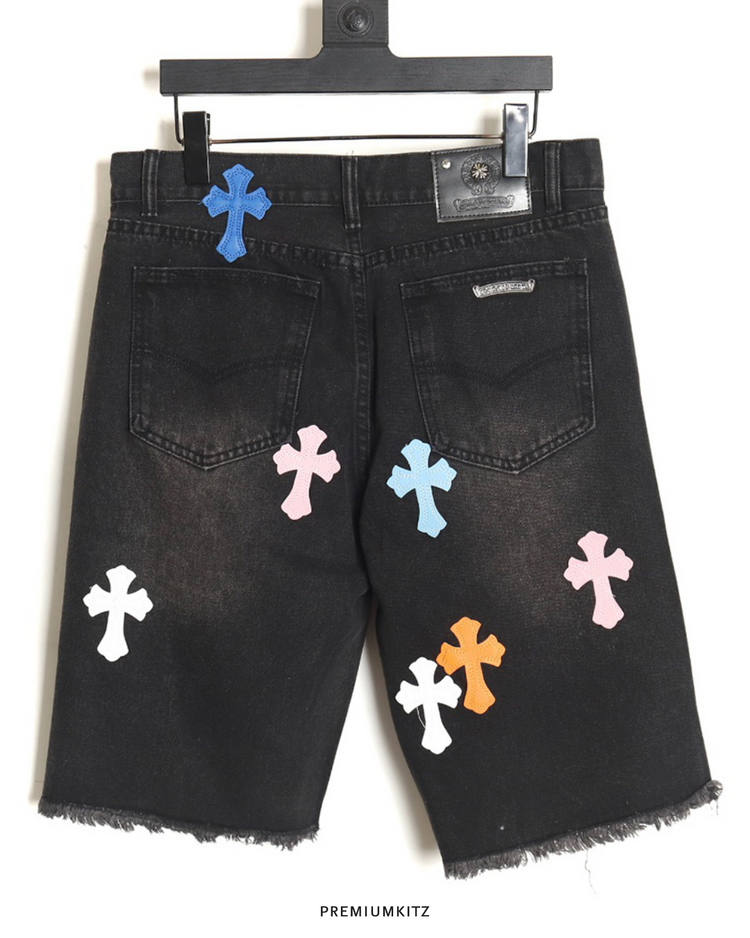 Chrome Hearts Multicolor Cross Patch Denim Shorts – Size 32